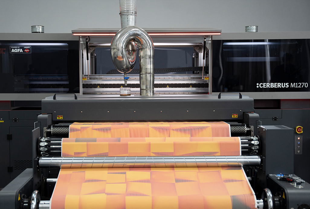 2023年為更好地滿足客戶個性化定制需求,特別是寬幅要求,引進德國AGFA(阿克發)工業數碼設備,產品無需制版,即可快速完成配色、調色、出樣、壓板與看樣,配合數碼凹印的匹配技術,在凹版印刷機上可快速還原色彩。可以配合設計師做個性化定制,任何精細的圖形、插畫、線條,包括文本都可以變成高品質花色,同時不受限于尺寸,還原最初始的美。